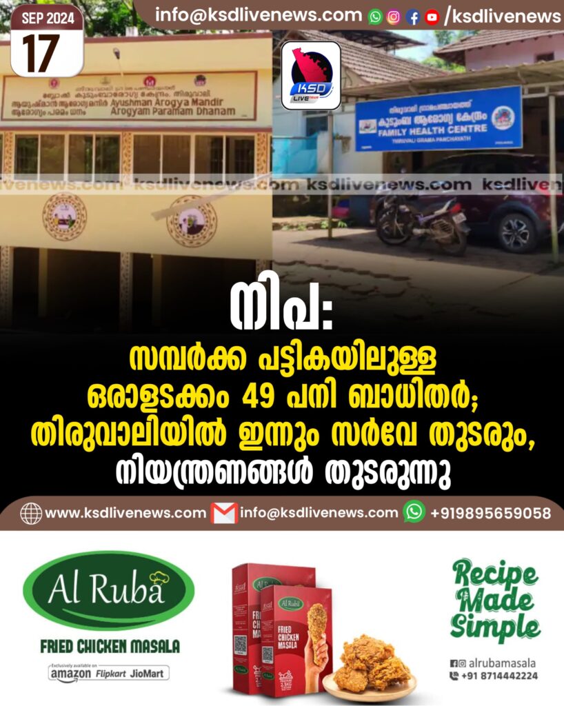 നിപ: സമ്പർക്ക പട്ടികയിലുള്ള ഒരാളടക്കം 49 പനി ബാധിതർ; തിരുവാലിയിൽ ഇന്നും സർവേ തുടരും, നിയന്ത്രണങ്ങൾ തുടരുന്നു