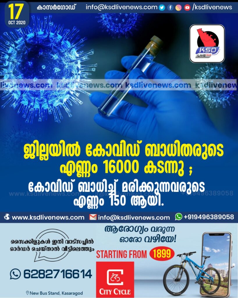 ജില്ലയിൽ കോവിഡ് ബാധിതരുടെ എണ്ണം 16000 കടന്നു ;