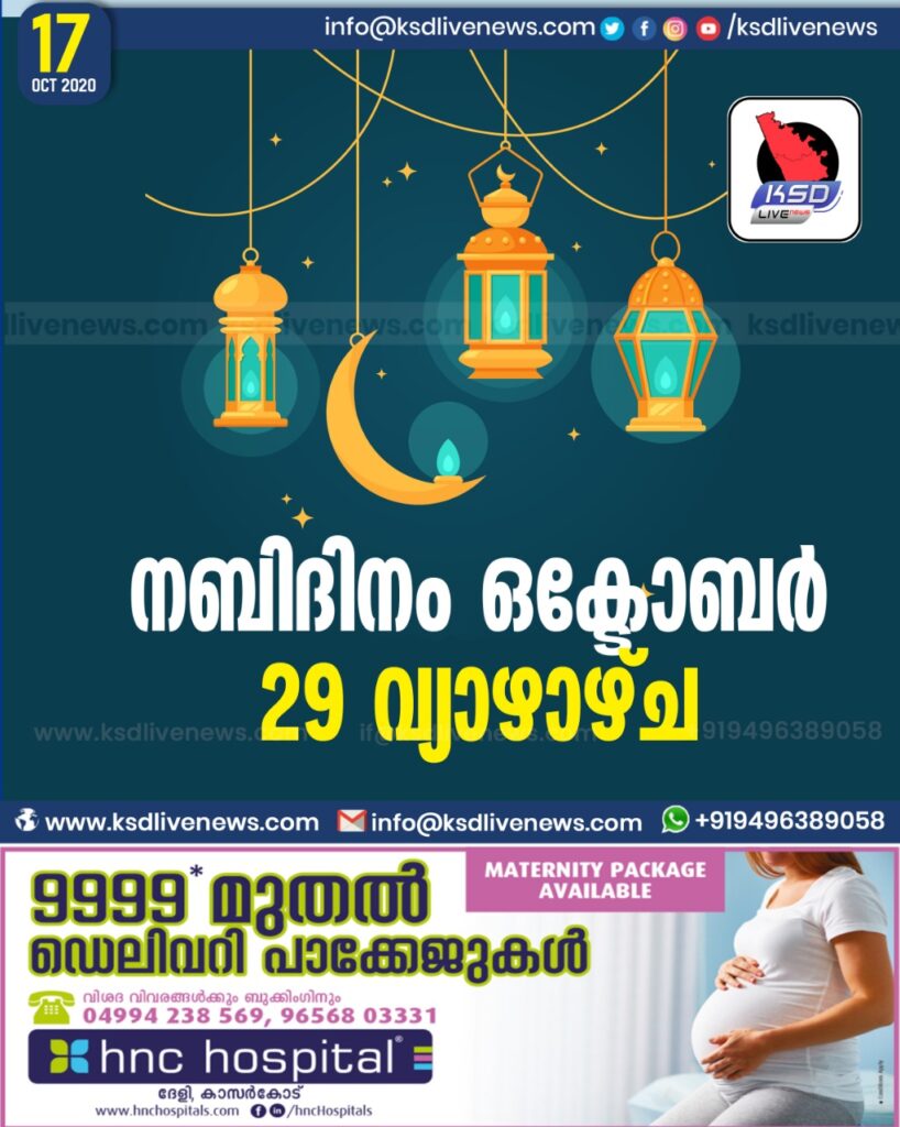 നബിദിനം ഒക്ടോബർ 29 വ്യാഴാഴ്ച