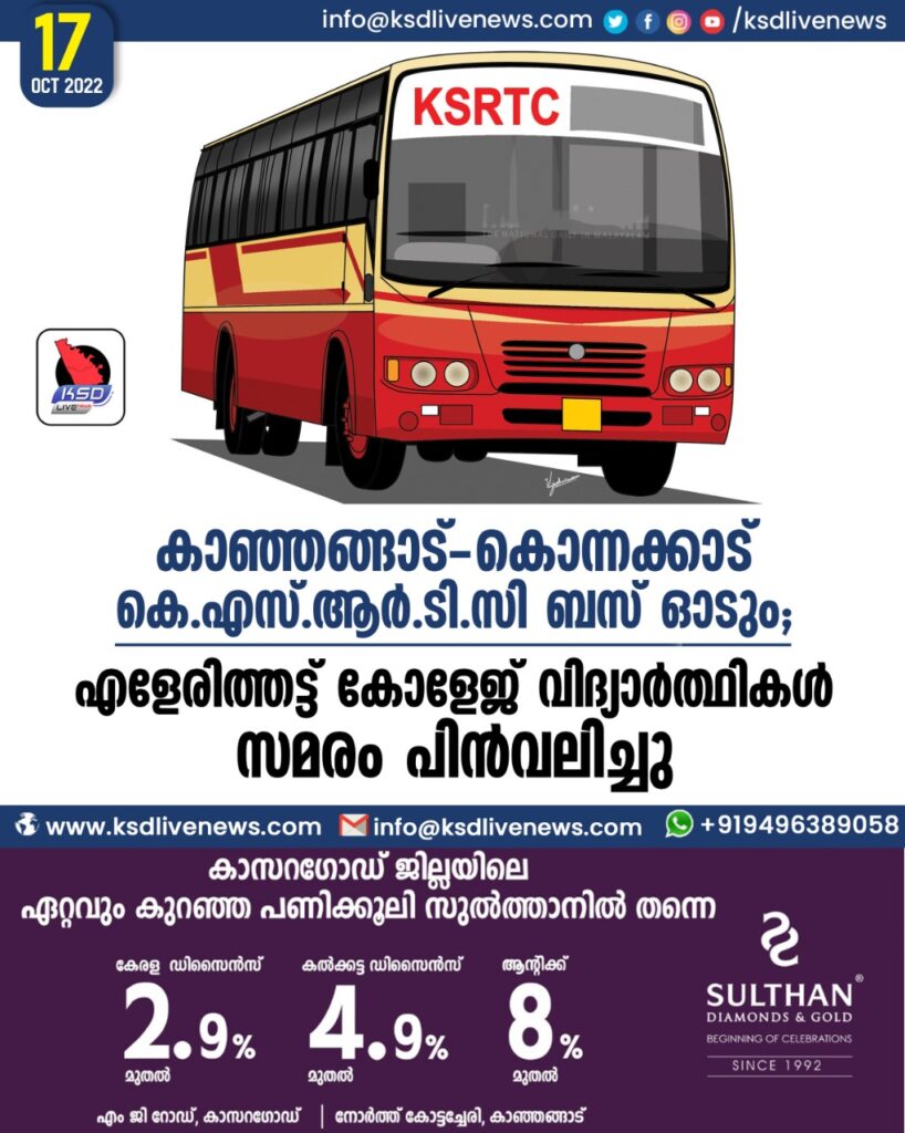 കാഞ്ഞങ്ങാട്-കൊന്നക്കാട് കെ.എസ്.ആര്.ടി.സി ബസ് ഓടും; എളേരിത്തട്ട് കോളേജ് വിദ്യാര്ത്ഥികള് സമരം പിന്വലിച്ചു