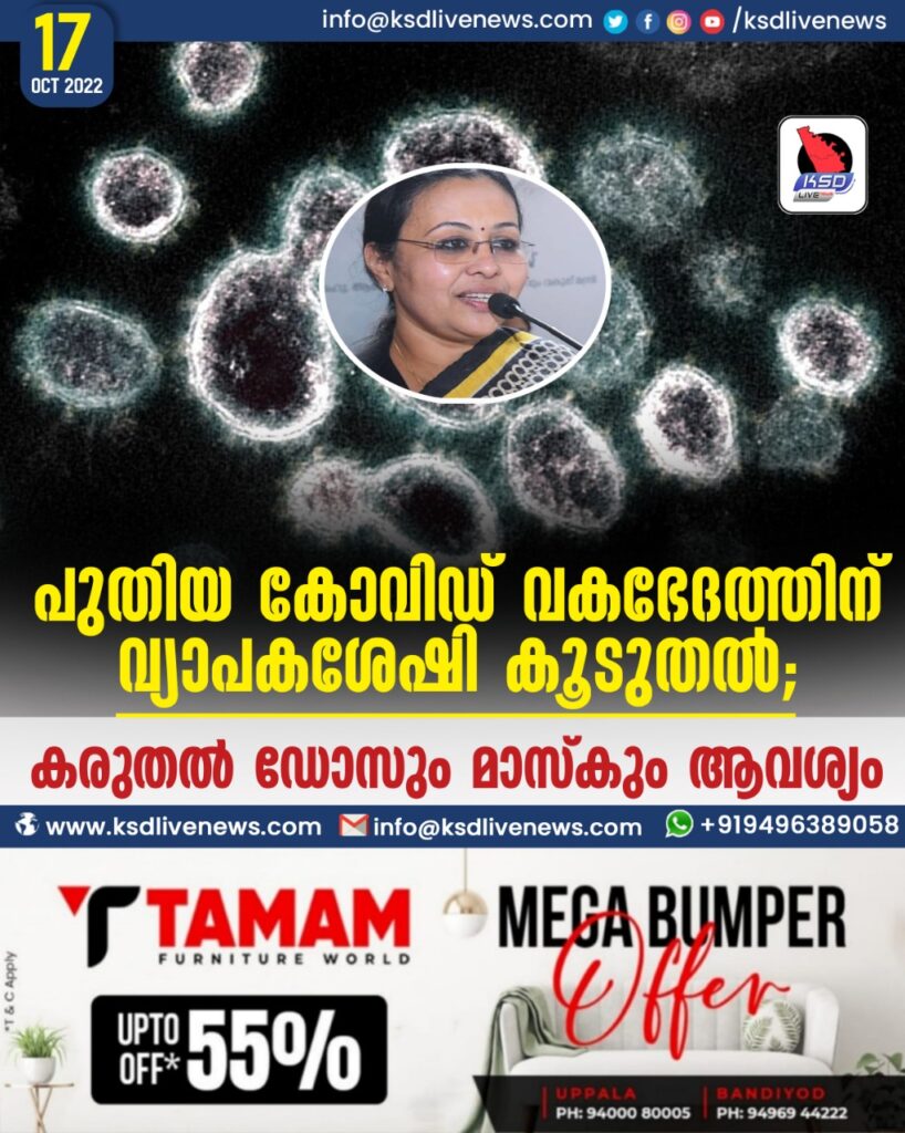 തിരുവനന്തപുരം ∙ ലോകത്തിന്റെ വിവിധ ഭാഗങ്ങളില്‍ കോവിഡിന്റെ പുതിയ ജനിതക വകഭേദം (XBB, XBB1) റിപ്പോര്‍ട്ടു ചെയ്ത സാഹചര്യത്തില്‍, പ്രതിരോധ പ്രവര്‍ത്തനങ്ങള്‍ ശക്തമാക്കിയതായി ആരോഗ്യമന്ത്രി വീണാ ജോര്‍ജ്. എല്ലാ ജില്ലകള്‍ക്കും നിര്‍ദേശം നല്‍കി. ഇതുവരെയുള്ള വകഭേദങ്ങളുമായി താരതമ്യം ചെയ്യുമ്പോൾ വളരെ വ്യാപനശേഷിയുള്ളതാണ് പുതിയത്. അതിനാല്‍ പ്രതിരോധം കൂടുതല്‍ ശക്തിപ്പെടുത്തും.