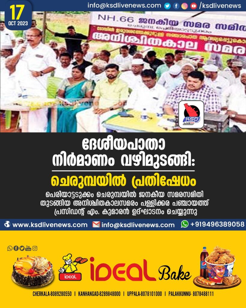 ദേശീയപാതാ നിർമാണം വഴിമുടങ്ങി: ചെരുമ്പയിൽ പ്രതിഷേധം