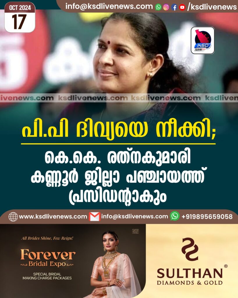 പി.പി ദിവ്യയെ നീക്കി; കെ കെ. രത്നകുമാരി കണ്ണൂര് ജില്ലാ പഞ്ചായത്ത് പ്രസിഡന്റാകും
