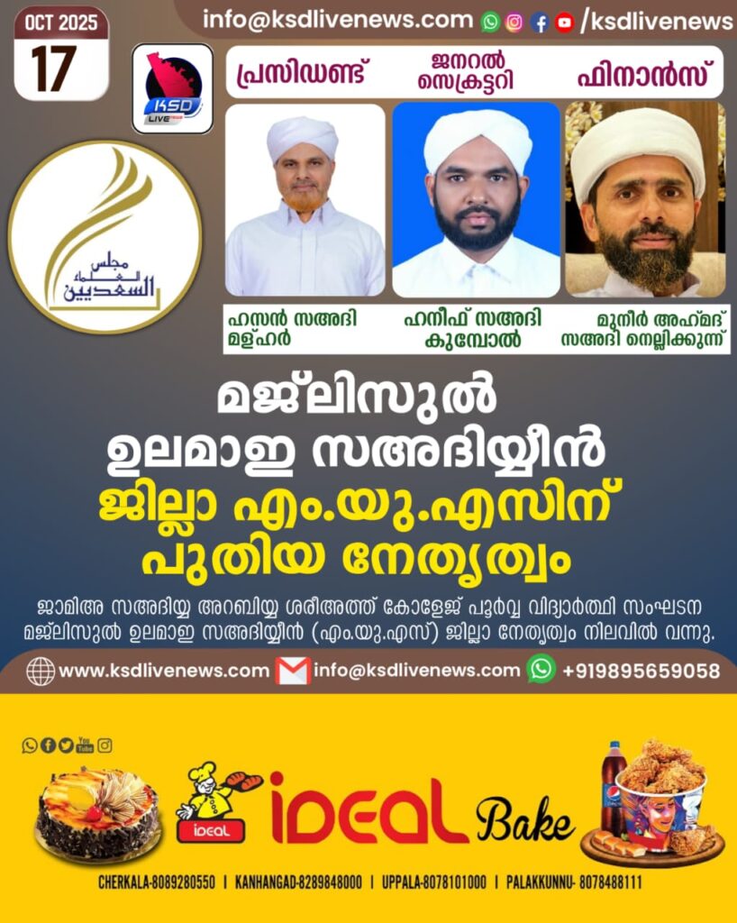 കാസറഗോഡ്: ജാമിഅ സഅദിയ്യ അറബിയ്യ ശരീഅത്ത് കോളേജ് പൂർവ്വ വിദ്യാർത്ഥി സംഘടന മജ്ലിസുൽ ഉലമാഇ സഅദിയ്യീൻ (എം യു എസ് ) ജില്ലാ നേതൃത്വം നിലവിൽ വന്നു.