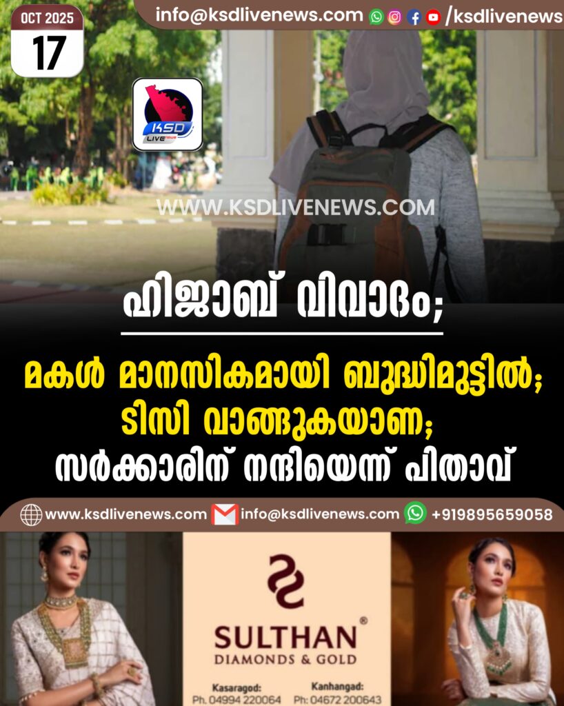 ഹിജാബ് വിവാദം; ‘മകൾ മാനസികമായി ബുദ്ധിമുട്ടില്‍; ടിസി വാങ്ങുകയാണ; സർക്കാരിന് നന്ദിയെന്ന് പിതാവ്