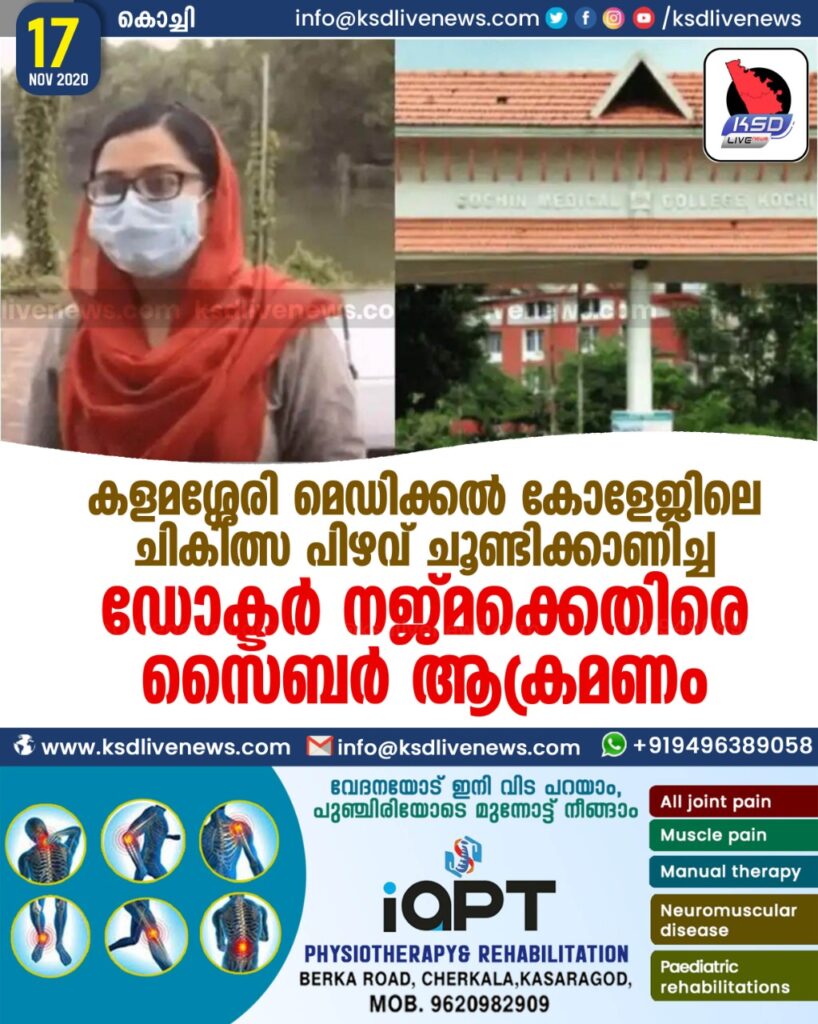 കളമശ്ശേരി മെഡിക്കൽ കോളേജിലെ ചികിത്സ പിഴവ് ചൂണ്ടിക്കാണിച്ച ഡോക്ടർ നജ്മക്കെതിരെ സൈബർ ആക്രമണം