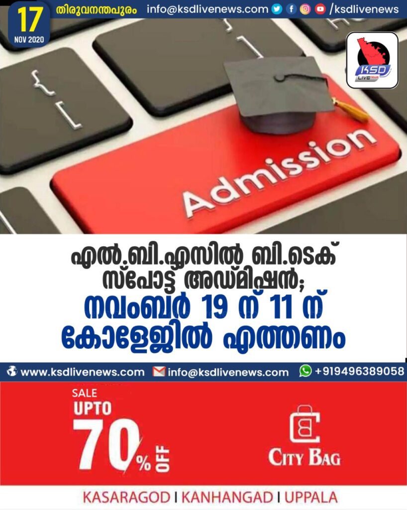 എൽ.ബി.എസിൽ ബി.ടെക് സ്പോട്ട് അഡ്മിഷൻ ; നവംബർ 19 ന് 11 ന് കോളേജിൽ എത്തണം