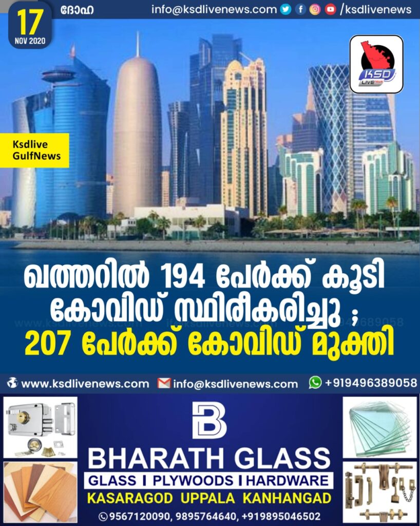 ഖത്തറില് 194 പേര്ക്ക് കൂടി കോവിഡ് സ്ഥിരീകരിച്ചു ; 207 പേർക്ക് കോവിഡ് മുക്തി