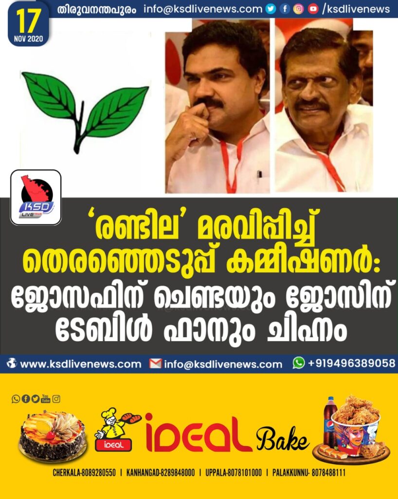 ‘ രണ്ടില ‘ മരവിപ്പിച്ച് തെരഞ്ഞെടുപ്പ് കമ്മീഷണർ : ജോസഫിന് ചെണ്ടയും ജോസിന് ടേബിൾ ഫാനും ചിഹ്നം