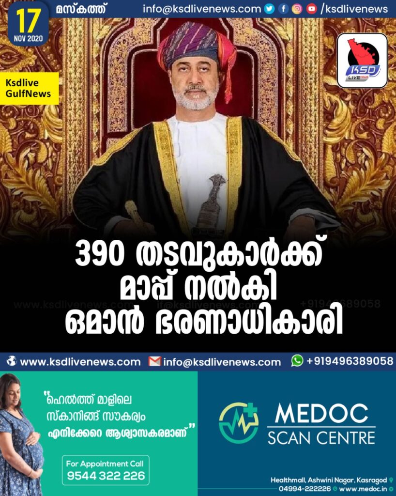 390 തടവുകാർക്ക് മാപ്പ് നൽകി ഒമാൻ ഭരണാധികാരി