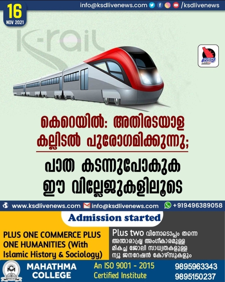 കെ-റെയില്‍: അതിരടയാള കല്ലിടല്‍ പുരോഗമിക്കുന്നു; പാത കടന്നുപോകുക ഈ വില്ലേജുകളിലൂടെ