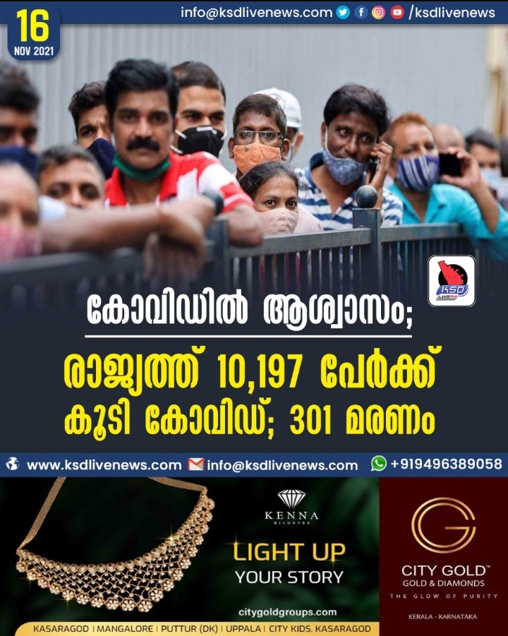 കോവിഡിൽ ആശ്വാസം; രാജ്യത്ത് 10,197 പേര്‍ക്ക് കൂടി കോവിഡ്; 301 മരണം
