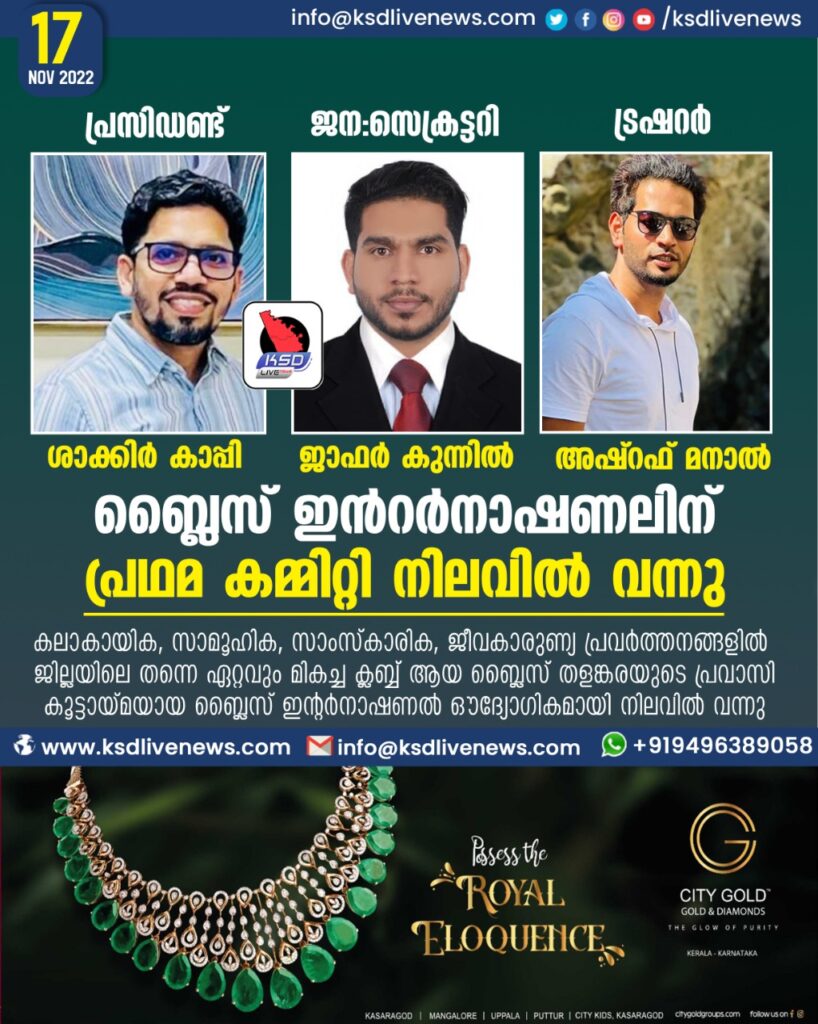 കാസറഗോഡ്: കലാ-കായിക, സാമൂഹിക, സാംസ്കാരിക, ജീവകാരുണ്യ പ്രവർത്തനങ്ങളിൽ ജില്ലയിലെ തന്നെ ഏറ്റവും മികച്ച ക്ലബ്ബ് ആയ ബ്ലൈസ് തളങ്കരയുടെ പ്രവാസി കൂട്ടായ്മയായ ബ്ലൈസ് ഇൻ്റർനാഷണൽ ഔദ്യോഗികമായി നിലവിൽ വന്നു. നവംബർ 13 ഞായറാഴ്ച പത്തോളം രാജ്യങ്ങളിൽ വസിക്കുന്ന നൂറിൽപരം ബ്ലൈസ് അംഗങ്ങളാണ് ഓൺലൈൻ സാങ്കേതിക വിദ്യയിലൂടെ ഒത്തുചേർന്ന് ബ്ലൈസ് ഇൻ്റർനാഷണൽ ഔദ്യോഗികമായി പ്രഖ്യാപിക്കുകയും റിട്ടേണിംഗ് ഓഫീസർമാരായ നിയാസ് നിയോ (ദുബൈ), നിഷാദ് (ബഹ്റൈൻ) എന്നിവരുടെ മേൽനോട്ടത്തിൽ ഓൺലൈൻ തെരഞ്ഞെടുപ്പിലൂടെ 2022-2024 വർഷത്തേക്കുള്ള പ്രഥമ കമ്മിറ്റി ഭാരവാഹികളെ തെരഞ്ഞെടുക്കപ്പെടുകയും ചെയ്തു.