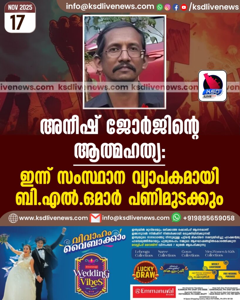 അനീഷ് ജോര്ജിന്റെ ആത്മഹത്യ; ഇന്ന് സംസ്ഥാന വ്യാപകമായി ബിഎല്ഒമാര് പണിമുടക്കും