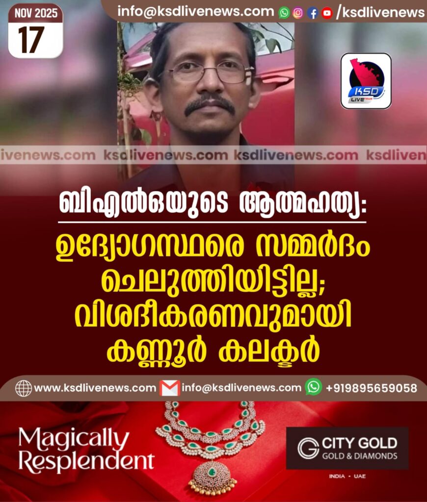 ബിഎൽഒയുടെ ആത്മഹത്യ: ഉദ്യോഗസ്ഥരെ സമ്മർദം ചെലുത്തിയിട്ടില്ല; വിശദീകരണവുമായി കണ്ണൂർ കലക്ടർ