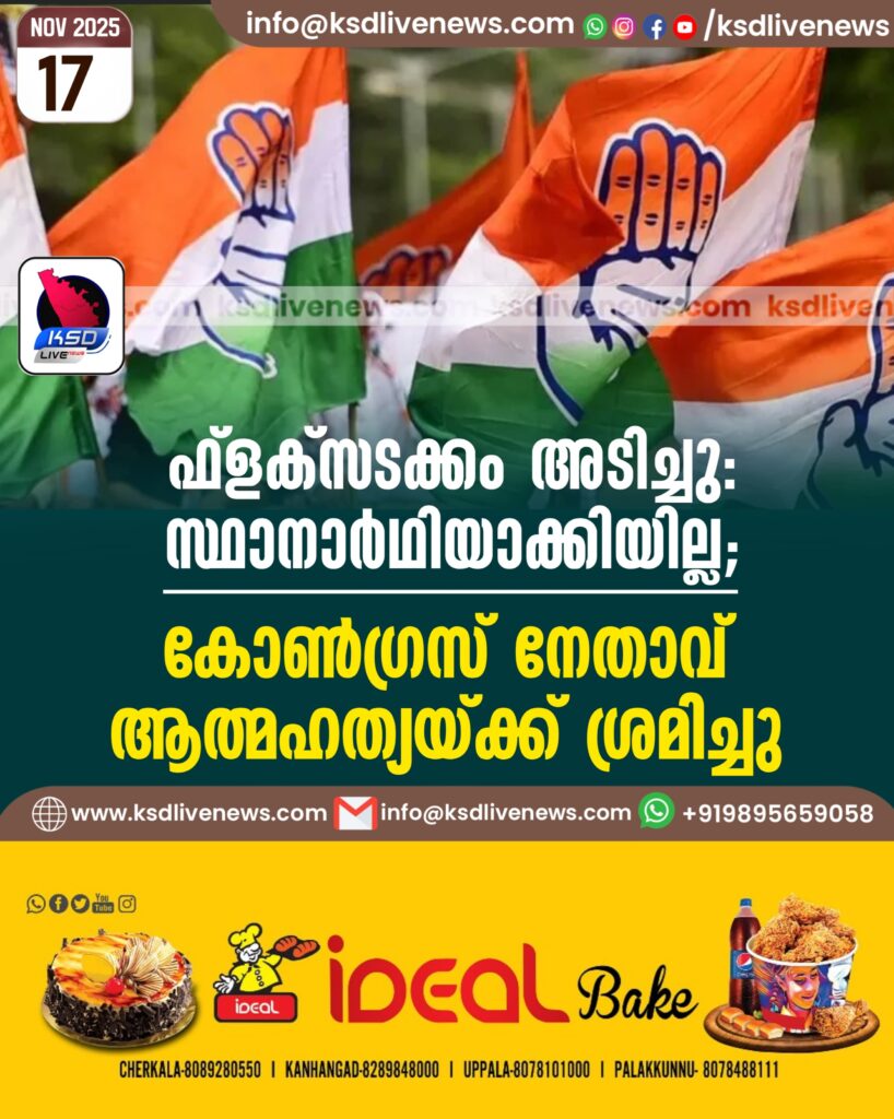 ഫ്ളക്സടക്കം അടിച്ചു, സ്ഥാനാര്ഥിയാക്കിയില്ല; കോണ്ഗ്രസ് നേതാവ് ആത്മഹത്യയ്ക്ക് ശ്രമിച്ചു