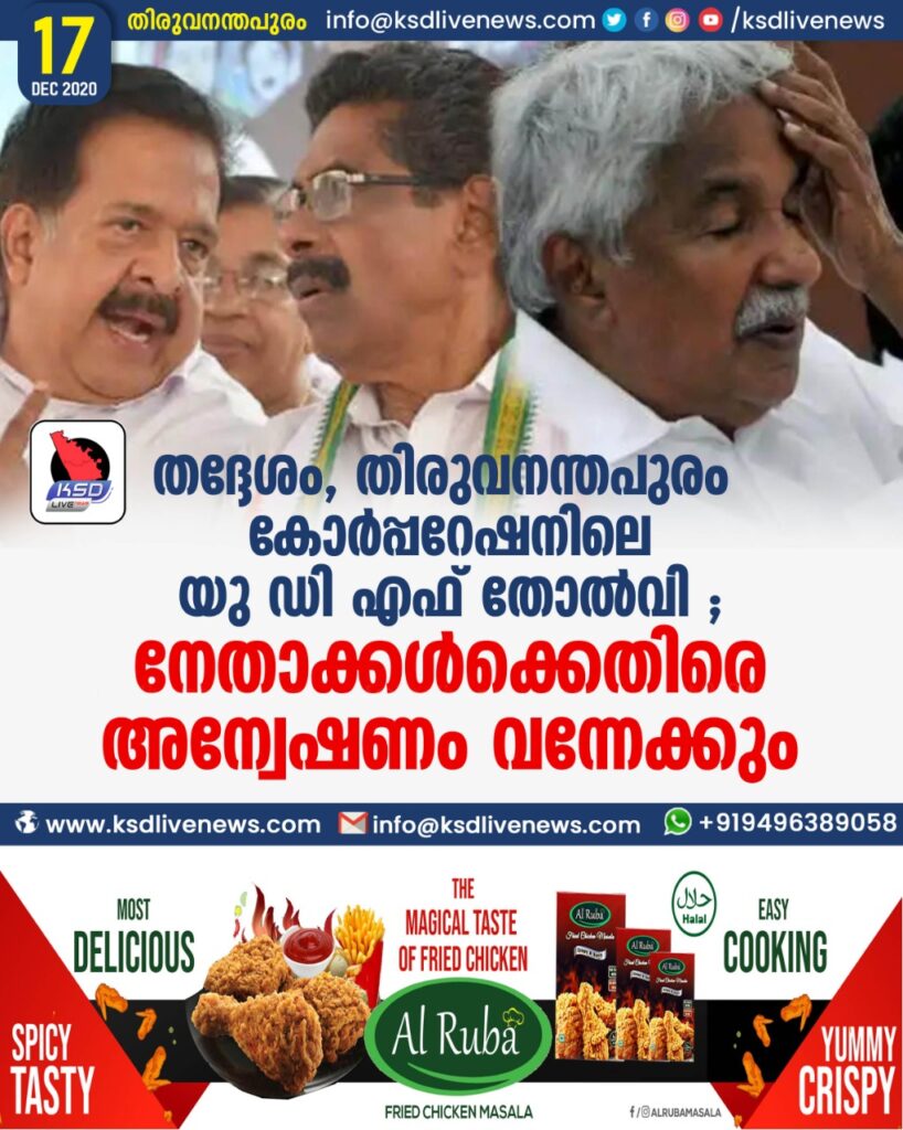 തദ്ദേശം, തിരുവനന്തപുരം കോർപ്പറേഷനിലെ യു ഡി എഫ് തോൽവി ; നേതാക്കൾക്കെതിരെ അന്വേഷണം വന്നേക്കും