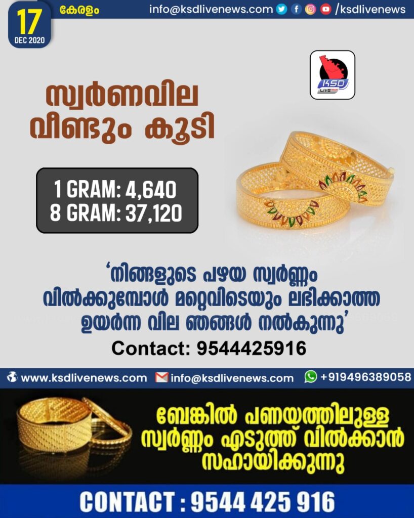 സ്വര്‍ണവിലയില്‍ വീണ്ടും വര്‍ധന: പവന് 160 രൂപകൂടി 37,120 രൂപയായി