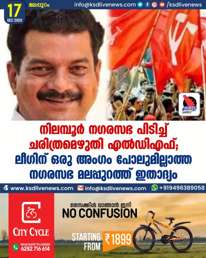 നിലമ്പൂർ നഗരസഭ പിടിച്ച് ചരിത്രമെഴുതി എൽഡിഎഫ് ; ലീഗിന് ഒരു അംഗം പോലുമില്ലാത്ത നഗരസഭ മലപ്പുറത്ത് ഇതാദ്യം
