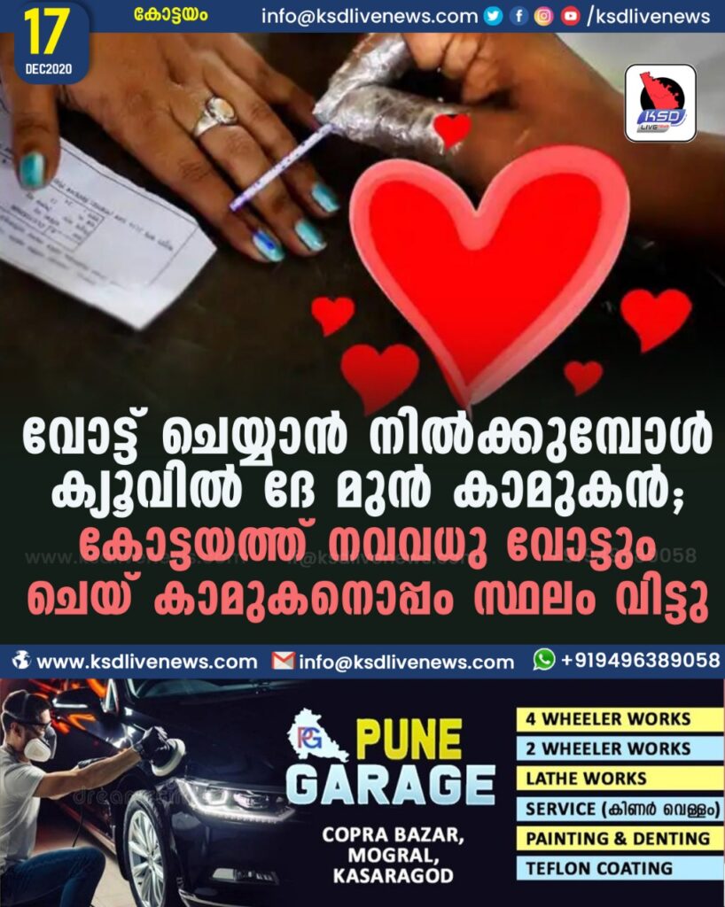 വോട്ട് ചെയ്യാൻ നിൽക്കുമ്പോൾ ക്യൂവിൽ ദേ മുൻ കാമുകൻ ; കോട്ടയത്ത് നവവധു വോട്ടും ചെയ് കാമുകനൊപ്പം സ്ഥലം വിട്ടു