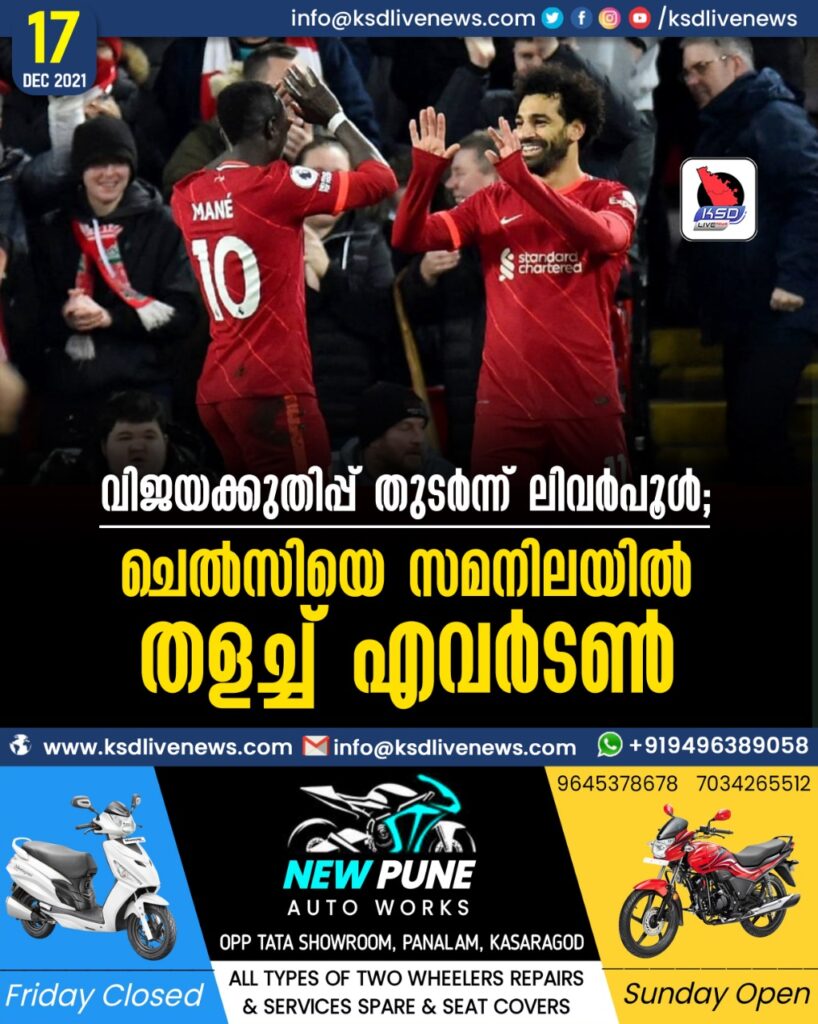 വിജയക്കുതിപ്പ് തുടര്ന്ന് ലിവര്പൂള്; ചെല്സിയെ സമനിലയില് തളച്ച് എവര്ടണ്