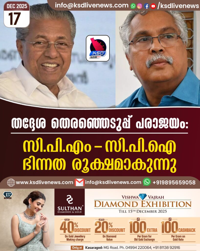 തദ്ദേശ തെരഞ്ഞെടുപ്പ് പരാജയം: സിപിഎം-സിപിഐ ഭിന്നത രൂക്ഷമാകുന്നു