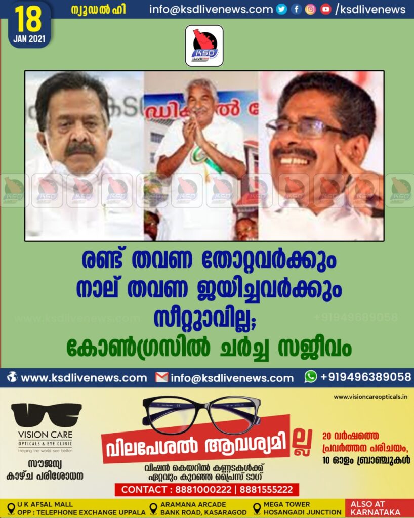 രണ്ട് തവണ തോറ്റവര്ക്കും നാല് തവണ ജയിച്ചവര്ക്കും സീറ്റുണ്ടാവില്ല; കോണ്ഗ്രസില് ചര്ച്ച സജീവം
