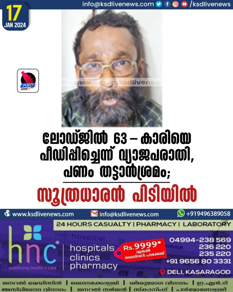 ലോഡ്ജില് 63-കാരിയെ പീഡിപ്പിച്ചെന്ന് വ്യാജപരാതി, പണം തട്ടാന്ശ്രമം; സൂത്രധാരന് പിടിയില്