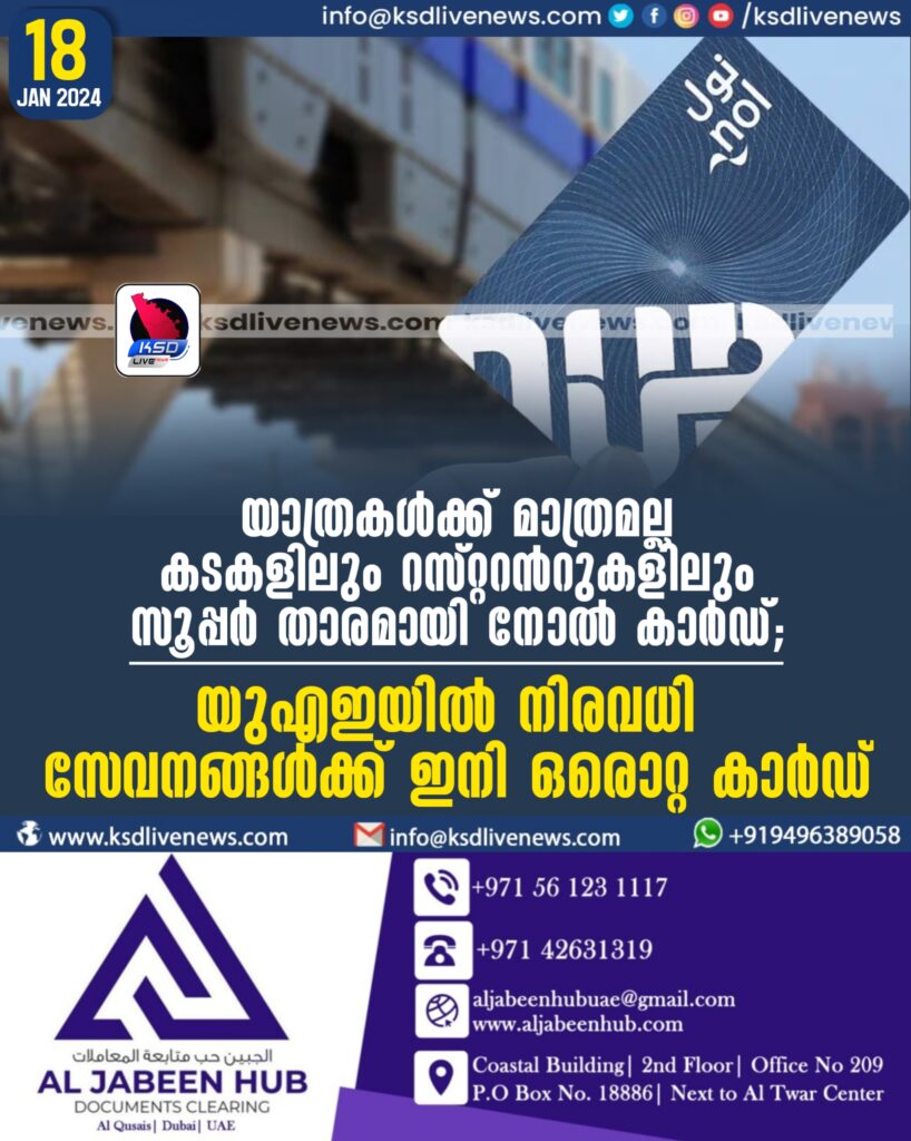 യാത്രകൾക്ക് മാത്രമല്ല കടകളിലും റസ്റ്ററന്റുകളിലും സൂപ്പർ താരമായി നോൽ കാർഡ് ; യുഎഇയിൽ നിരവധി സേവനങ്ങൾക്ക് ഇനി ഒരൊറ്റ കാർഡ്