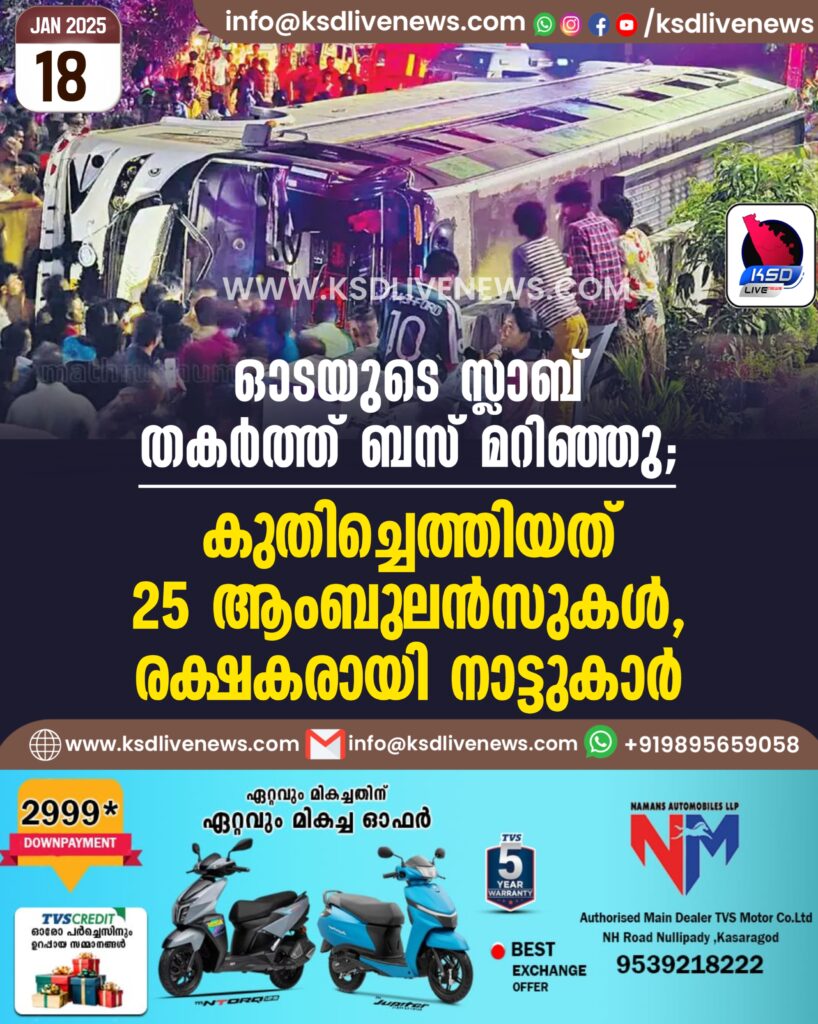 ഓടയുടെ സ്ലാബ് തകർത്ത് ബസ് മറിഞ്ഞു; കുതിച്ചെത്തിയത് 25 ആംബുലൻസുകൾ, രക്ഷകരായി നാട്ടുകാർ