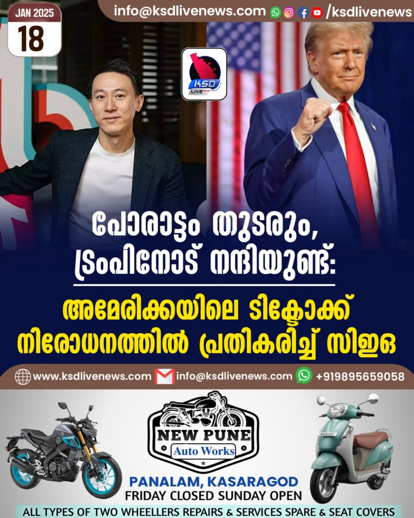 ‘പോരാട്ടം തുടരും, ട്രംപിനോട് നന്ദിയുണ്ട്’; അമേരിക്കയിലെ ടിക്ടോക്ക് നിരോധനത്തിൽ പ്രതികരിച്ച് സിഇഒ