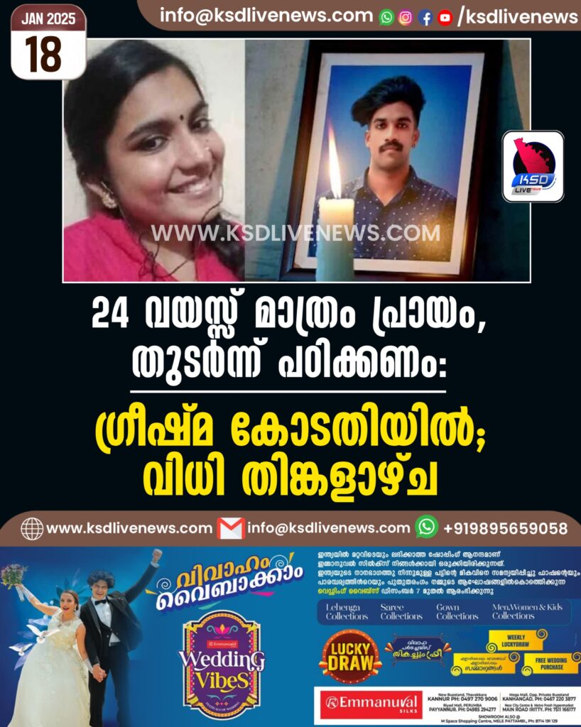 24 വയസ്സ് മാത്രം പ്രായം, തുടർന്ന് പഠിക്കണം: ഗ്രീഷ്മ കോടതിയിൽ; വിധി തിങ്കളാഴ്ച