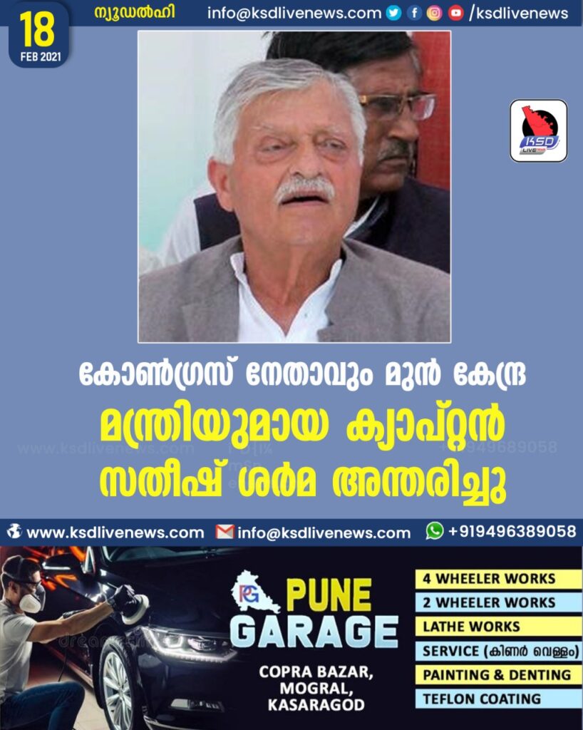 കോണ്ഗ്രസ് നേതാവും മുന് കേന്ദ്ര മന്ത്രിയുമായ ക്യാപ്റ്റന് സതീഷ് ശര്മ അന്തരിച്ചു