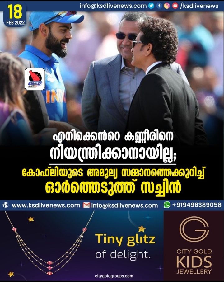 എനിക്കെന്‍റെ കണ്ണീരിനെ നിയന്ത്രിക്കാനായില്ല; കോഹ്‍ലിയുടെ അമൂല്യ സമ്മാനത്തെക്കുറിച്ച്‌ ഓര്‍ത്തെടുത്ത് സച്ചിന്‍
