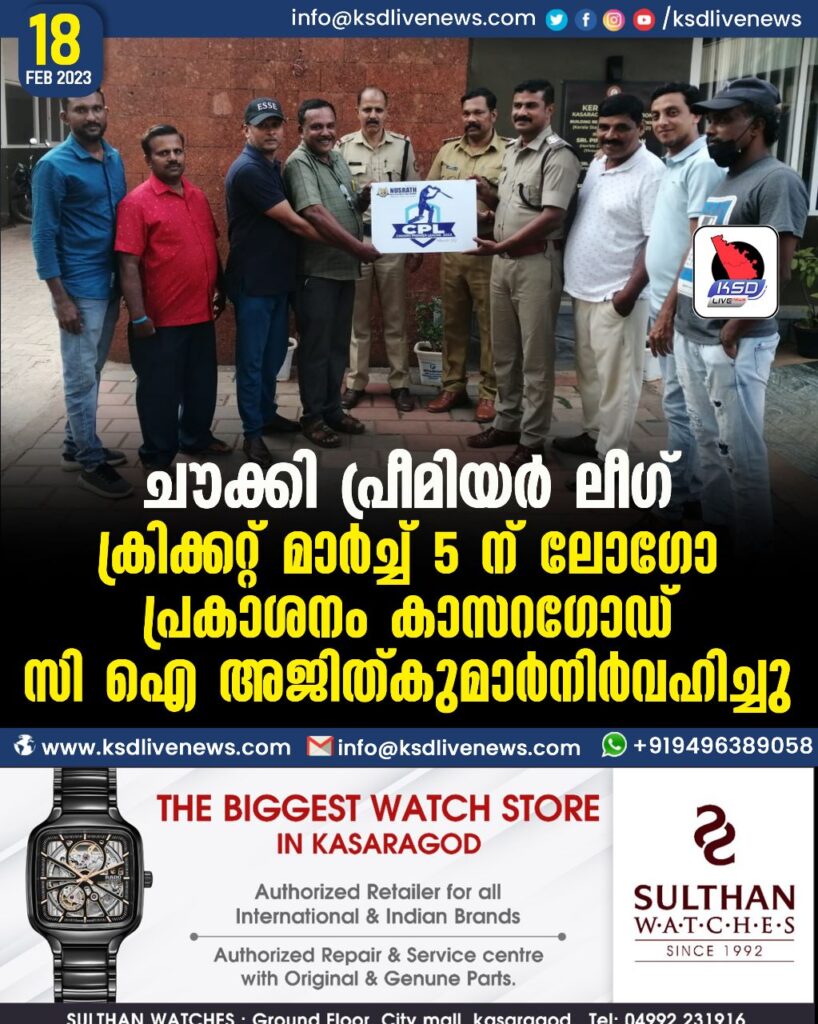 ക്രിക്കറ്റ്‌ മാർച്ച് 5 ന് ലോഗോ പ്രകാശനം കാസറഗോഡ് സി ഐ അജിത് കുമാർ നിർവഹിച്ചു