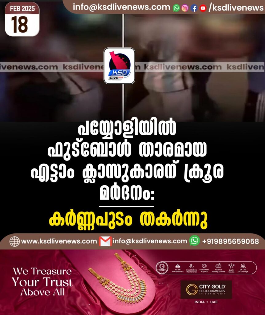 പയ്യോളിയില് ഫുട്ബോള് താരമായ എട്ടാം ക്ലാസുകാരന് ക്രൂര മര്ദനം: കര്ണ്ണപുടം തകര്ന്നു