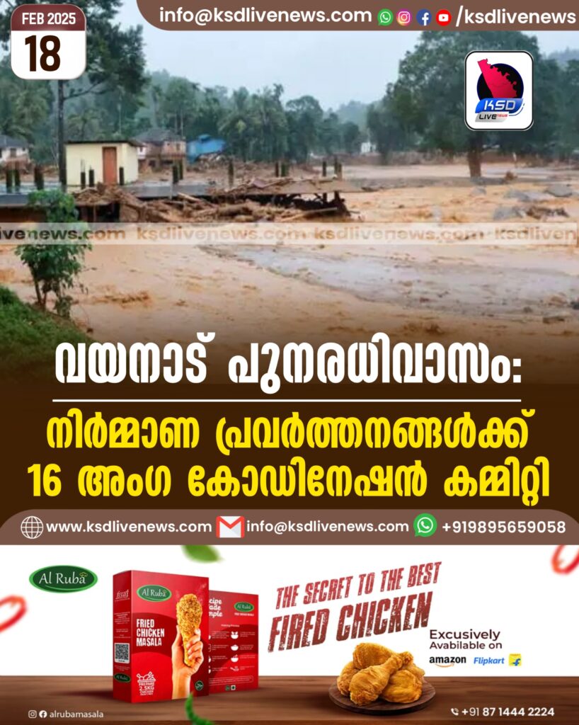 വയനാട് പുനരധിവാസം: നിര്മ്മാണ പ്രവര്ത്തനങ്ങള്ക്ക് 16 അംഗ കോഡിനേഷന് കമ്മിറ്റി