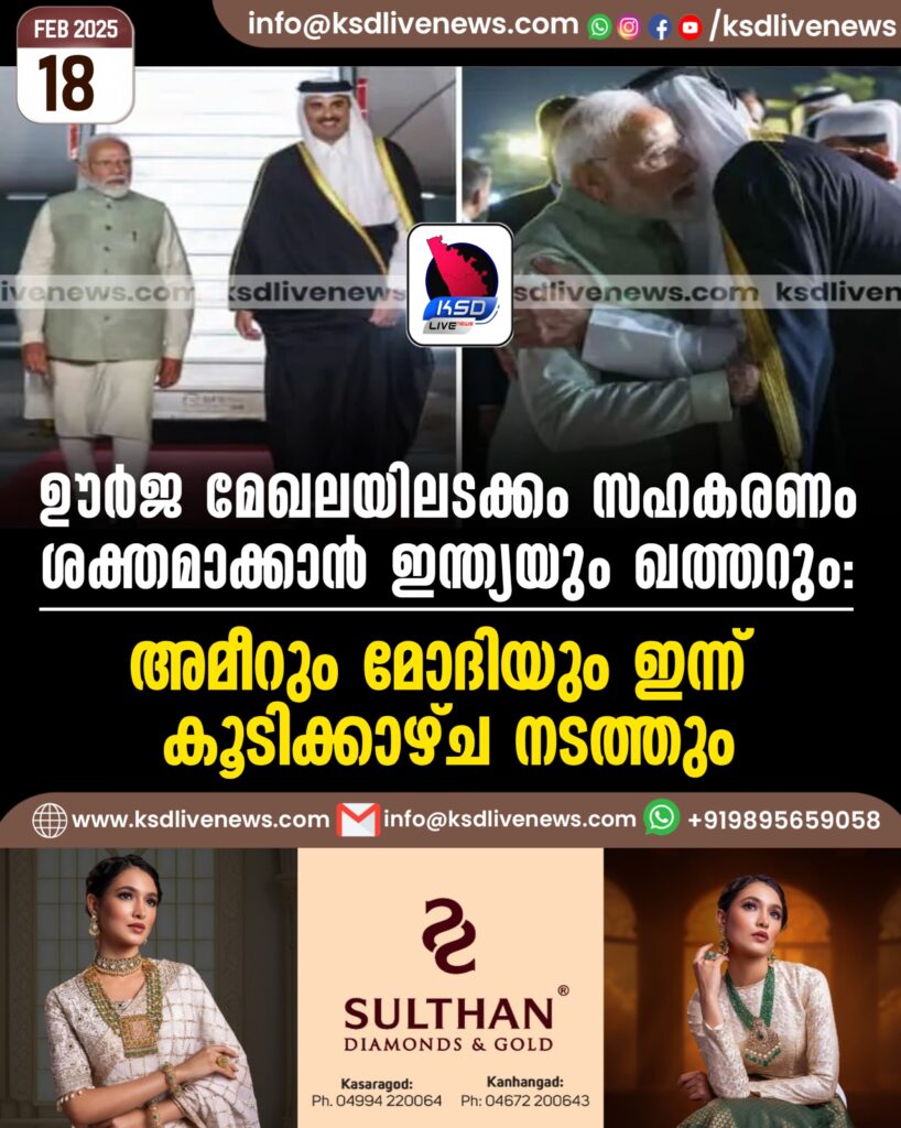 ഊര്ജ മേഖലയിലടക്കം സഹകരണം ശക്തമാക്കാൻ ഇന്ത്യയും ഖത്തറും; അമീറും മോദിയും ഇന്ന് കൂടിക്കാഴ്ച നടത്തും