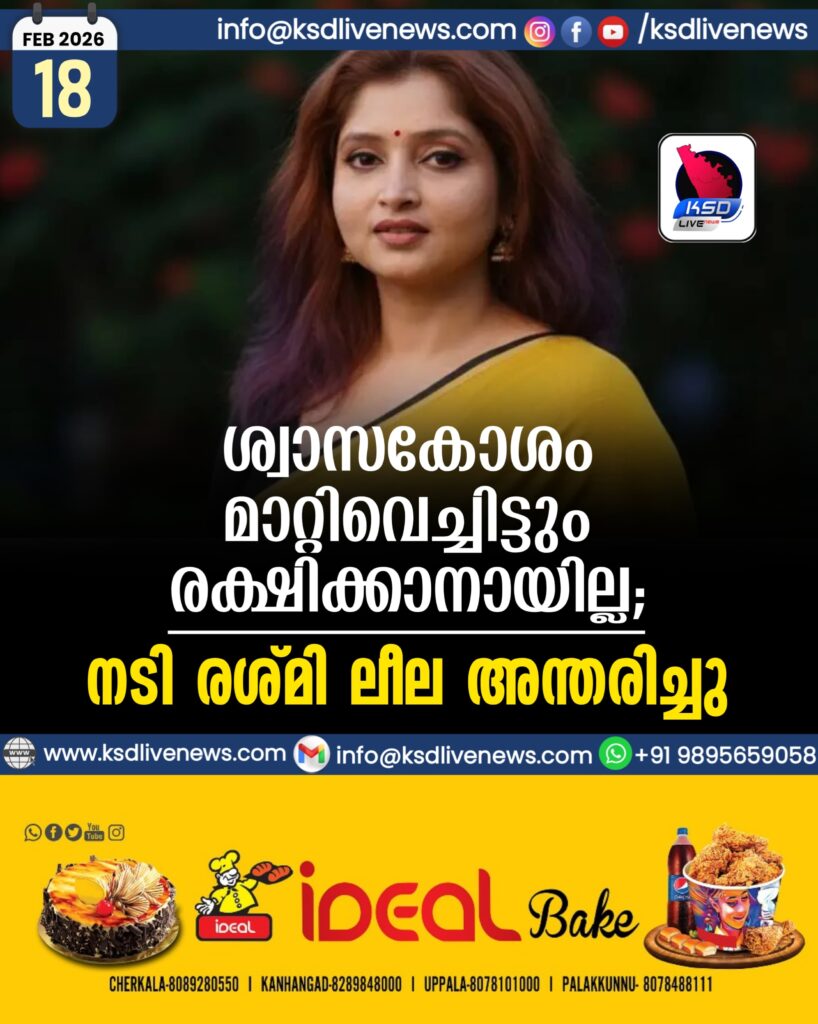 ശ്വാസകോശം മാറ്റിവെച്ചിട്ടും രക്ഷിക്കാനായില്ല; നടി രശ്മി ലീല അന്തരിച്ചു