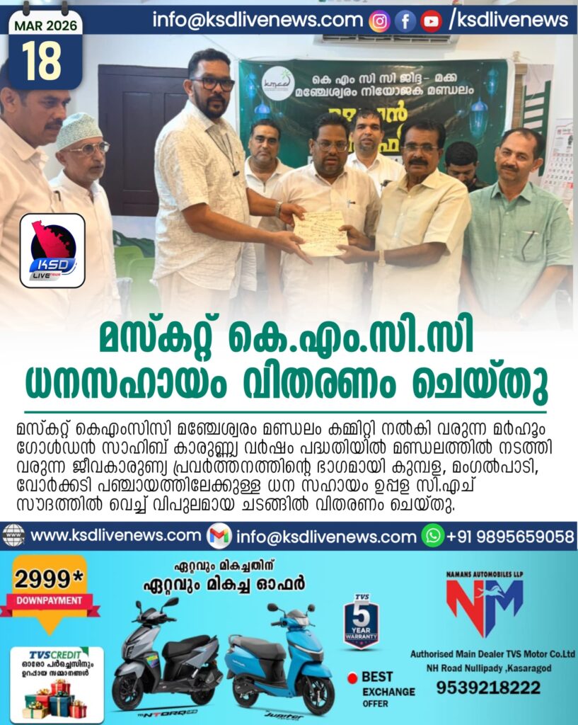 മസ്കറ്റ് കെ.എം.സി.സി ധനസഹായം വിതരണം ചെയ്തു