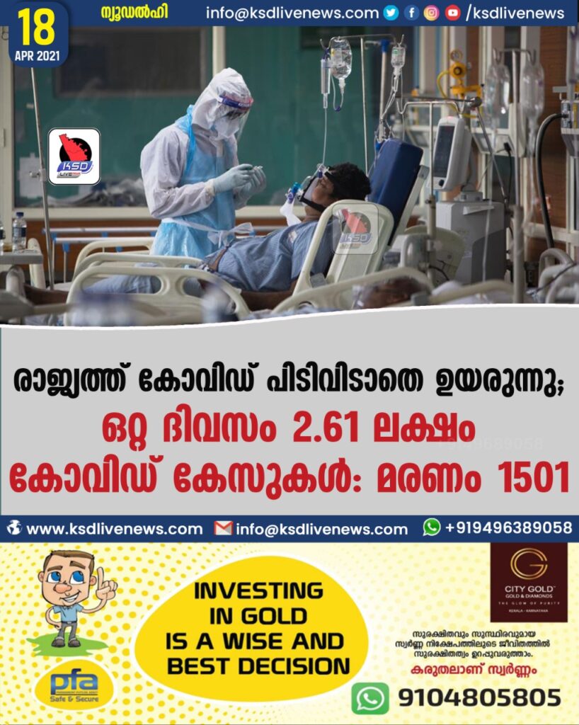 രാജ്യത്ത് കോവിഡ് പിടിവിടാതെ ഉയരുന്നു; ഒറ്റ ദിവസം 2.61 ലക്ഷം കോവിഡ് കേസുകള്‍: മരണം 1501