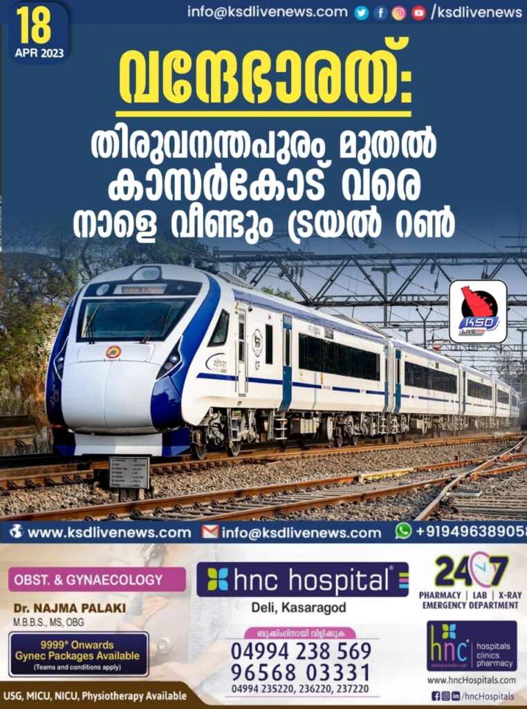 വന്ദേഭാരത്: തിരുവനന്തപുരം മുതൽ കാസർകോട് വരെ നാളെ വീണ്ടും ട്രയൽ റൺ