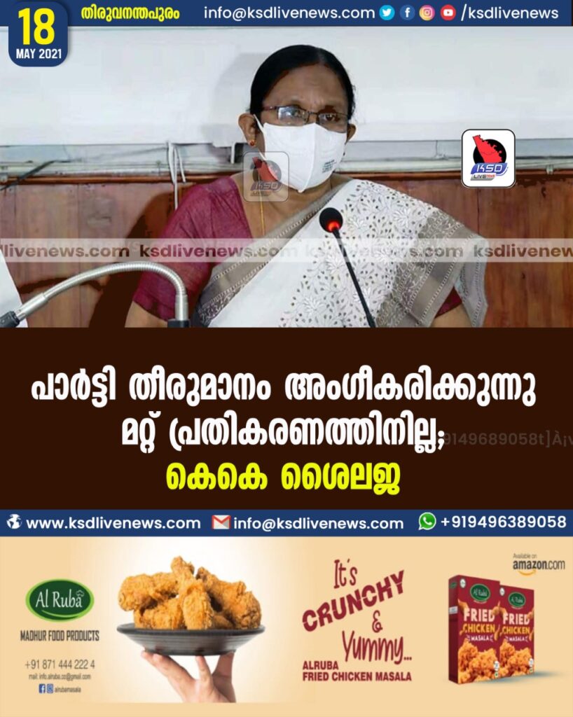 പാര്ട്ടി തീരുമാനം അംഗീകരിക്കുന്നു, മറ്റ് പ്രതികരണത്തിനില്ല; കെകെ ശൈലജ