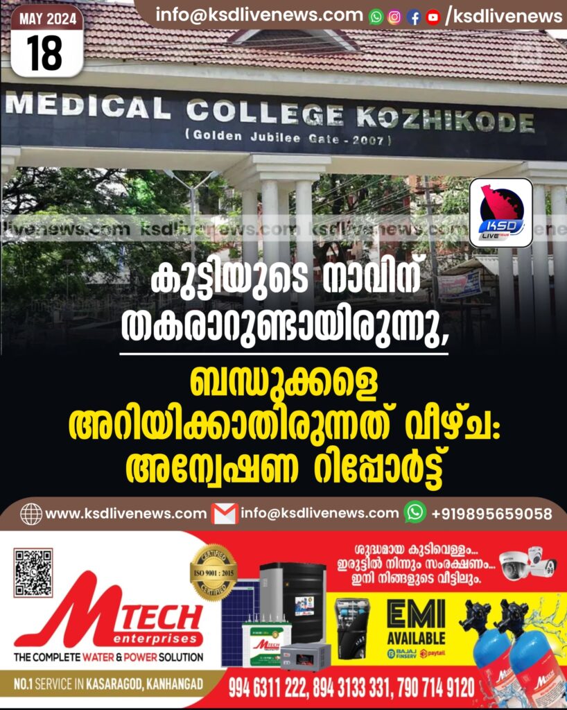 കുട്ടിയുടെ നാവിന് തകരാറുണ്ടായിരുന്നു, ബന്ധുക്കളെ അറിയിക്കാതിരുന്നത് വീഴ്ച- അന്വേഷണ റിപ്പോർട്ട്