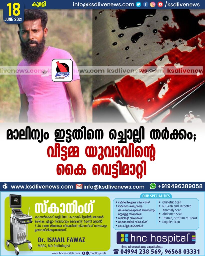 മാലിന്യം ഇട്ടതിനെച്ചൊല്ലി തർക്കം; വീട്ടമ്മ യുവാവിന്റെ കൈ വെട്ടിമാറ്റി
