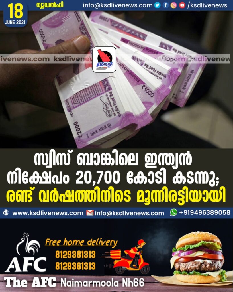 സ്വിസ് ബാങ്കിലെ ഇന്ത്യന്‍ നിക്ഷേപം 20,700 കോടി കടന്നു; രണ്ട് വര്‍ഷത്തിനിടെ മൂന്നിരട്ടിയായി