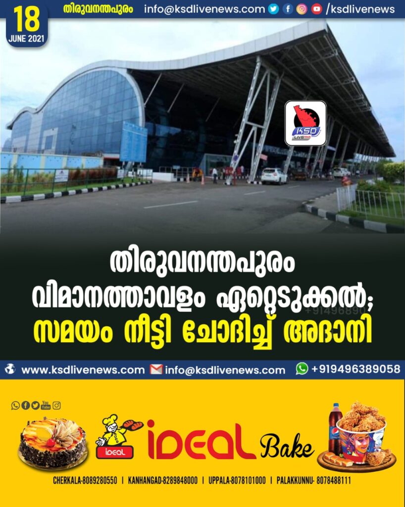 തിരുവനന്തപുരം വിമാനത്താവളം ഏറ്റെടുക്കല്; സമയം നീട്ടി ചോദിച്ച് അദാനി