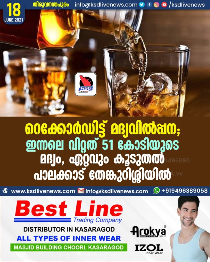 റെക്കോര്ഡിട്ട് മദ്യവില്പ്പന; ഇന്നലെ വിറ്റത് 51 കോടിയുടെ മദ്യം, ഏറ്റവും കൂടുതല് പാലക്കാട് തേങ്കുറിശ്ശിയില്
