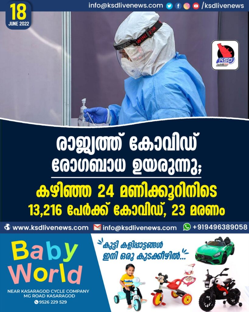 രാജ്യത്ത് കോവിഡ് രോഗബാധ ഉയരുന്നു; കഴിഞ്ഞ 24 മണിക്കൂറിനിടെ 13,216 പേര്‍ക്ക് കോവിഡ്, 23 മരണം