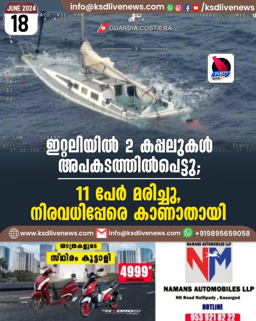 ഇറ്റലിയിൽ 2 കപ്പലുകൾ അപകടത്തിൽപെട്ടു; 11 പേർ മരിച്ചു, നിരവധിപ്പേരെ കാണാതായി